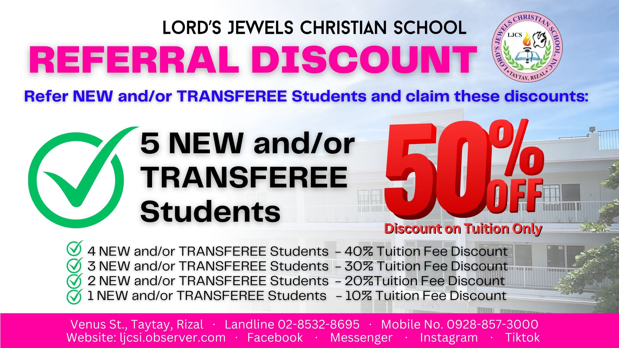 Invite others to BE a JEWEL Refer NEW and or TRANSFEREE students and avail of tuition fee discounts. Mechanics:– Referral Discount eligible for OLD and […]